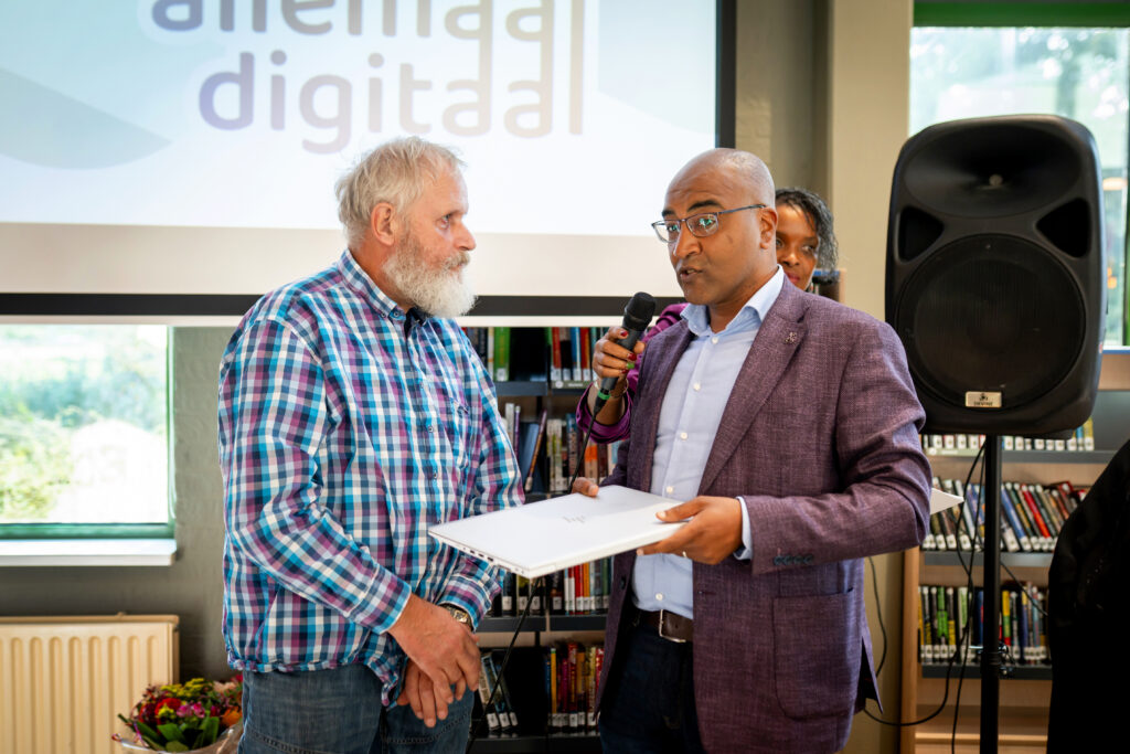 “Ik vind het belangrijk dat iedereen mee kan doen in onze maatschappij. Computer en technologie kom je overal tegen en bieden veel mogelijkheden tot ondersteuning voor alledaagse zaken. We hebben mensen geholpen om technologie in te zetten om een plekje in onze samenleving te vinden”, vertelt Mees Hoogesteger van Goodzo, donateur van Allemaal Digitaal.
